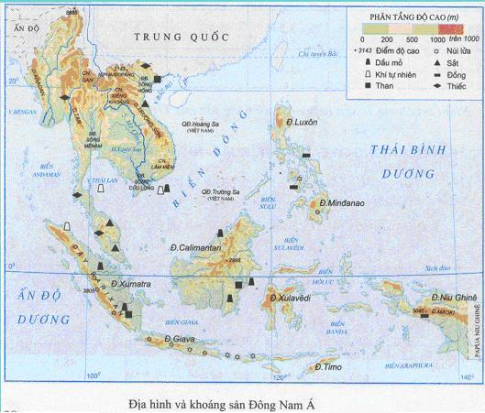 * Dựa vào lược đồ Địa hình và khoáng sản Đông Nam Á và kiến thức đã học, hãy trả lời câu 10 đến câu 12
