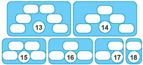 Bài 4. Viết các phép tính ở bảng cộng có tổng là số trong hình tròn
