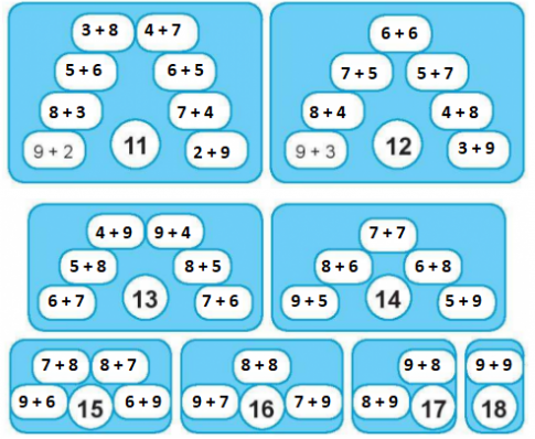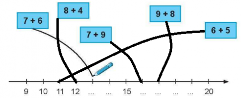 7 + 4 = ... 6 + 8 = ... 5 + 9 = ...