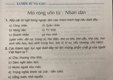 Giải bài Luyện từ và câu: Mở rộng vón từ Nhân dân