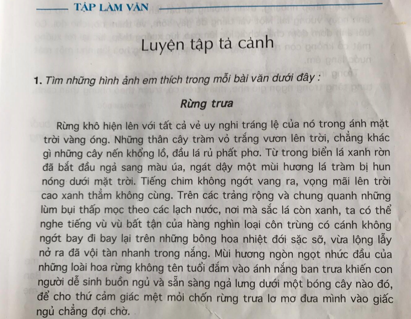 Tìm những hình ảnh em thích trong mỗi bài văn dưới đây: