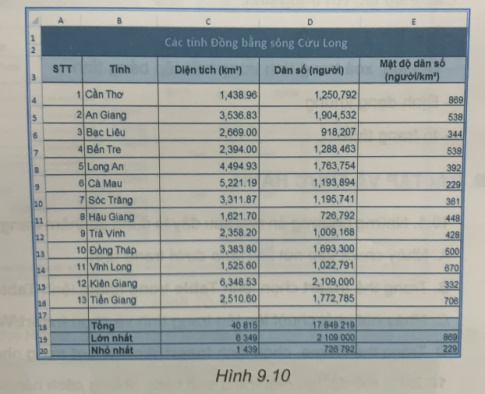 9.4. Thực hành: Hình 9.3 là bảng tính chứa thông tin về tình hình dịch Covid-19 tính đến ngày 3/9/2021 của các nước Đông Nam Á