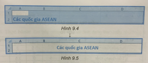 9.5. Để tiêu đề của bảng ở Hình 9.4 được căn giữa như Hình 9.5, em chọn các ô cần căn rồi chọn lệnh nào sau đây