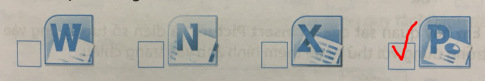 Câu 1. Nháy đúp chuột vào biểu tượng nào sau đây trên màn hình nền để khởi động phần mềm trình chiếu PowerPoint? Đánh dấu v vào ô trống trước đáp án đúng