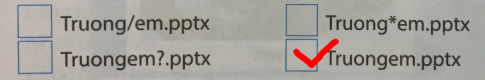 Câu 9. Tên bài trình chiếu lưu vào máy tính nào đặt đúng quy tắc? Đánh dấu v vào ô trống trước đáp án đúng