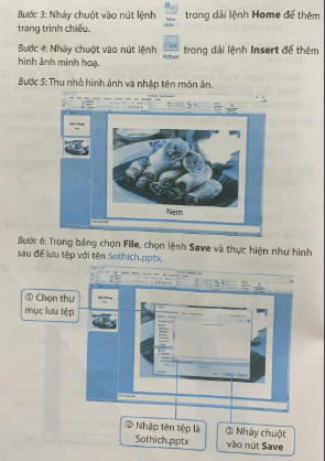 Câu 10. Thực hành tạo bài trình chiếu có 2 đến 3 trang để giới thiệu về món ăn em yêu thích. Lưu tệp với tên Sothich.pptx.