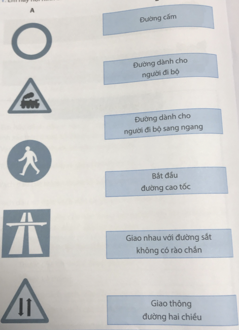 Bài 1: Em hãy nối hình bên biển báo ở cột A với ý nghĩa ở cột B sao cho đúng.