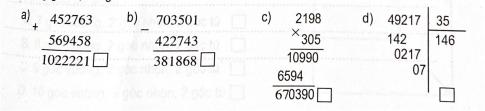 2. Đánh dấu x vào ô trống thích hợp:
