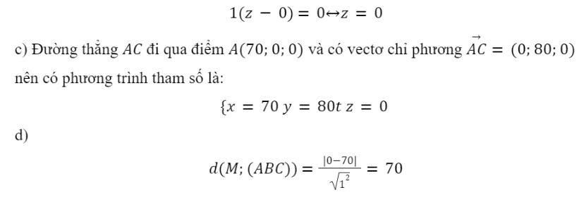 d) Cho biết đầu mũi tiện đang đặt tại điểm M(0;60;40). Tính khoảng cách từ M đến mặt phẳng (ABC).