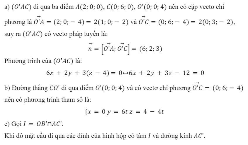 Cho hình hộp chữ nhật OABC.O'A'B'C', với O là gốc toạ độ, A(2;0;0), C(0;6;0), O'(0;0;4). Viết phương trình: