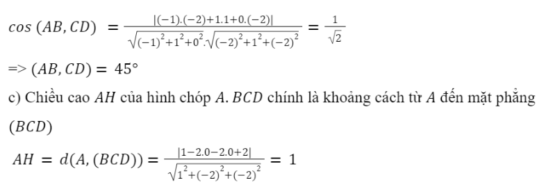 c) Tính độ dài đường cao của hình chóp A.BCD.