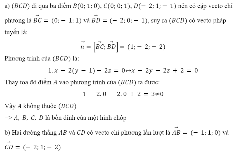 a) Chứng minh A, B, C, D là bốn đỉnh của một hình chóp.