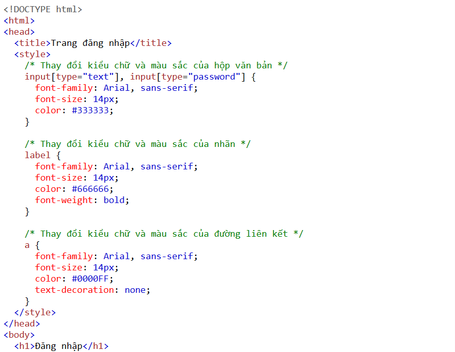 c) Thay đổi kiểu chữ và màu sắc các thành phần của biểu mẫu trong tệp login.html vừa tạo.