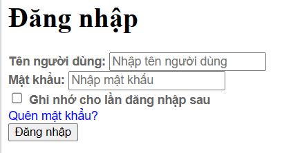 Bổ sung mã lệnh HTML vào tệp login.html để thêm các thành phần nhập liệu sau: a) Hộp kiểm có nhãn Ghi nhớ cho lần đăng nhập sau.
