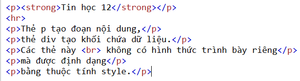 Chỉnh sửa đoạn mã html trong Ví dụ 1 để hiển thị thêm một đường kẻ ngang phân tách giữa dòng tiêu đề “Tin học 12” và nội dung phía dưới.