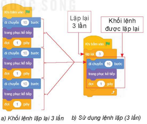 Câu hỏi 3: Em hãy nêu ví dụ cho thấy sử dụng khối lệnh lặp giúp chương trình ngắn gọn, dễ hiểu hơn.