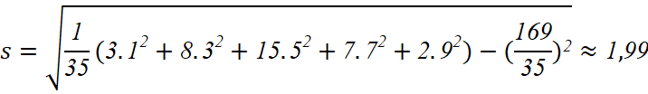 b) Độ lệch chuẩn của mẫu số liệu ghép nhóm này là (làm tròn kết quả đến hàng phần trăm)