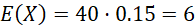 Tỉ lệ phát bóng hỏng của một vận động viên bóng chuyền là 15%. Vận động viên đó thực hiện 40 quả phát bóng một cách độc lập với nhau. Gọi X là số quả phát bóng hỏng trong 40 quả đó.