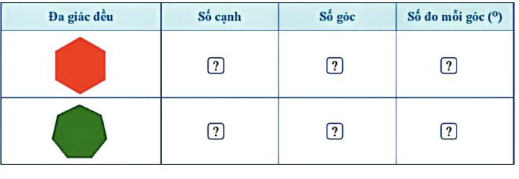 Quan sát từng đa giác đều và tìm số thích hợp trong bảng sau: