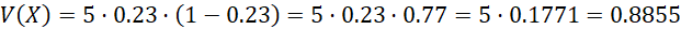 Tỉ lệ người cao tuổi trong một cộng đồng dân cư là 23%. Chọn ngẫu nhiên một cách độc lập 5 người trong cộng đồng dân cư. Gọi X là số người cao tuổi trong 5 người được chọn. Hãy tính kì vọng và phương sai của X.
