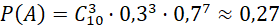 Xác suất của biến cố A: "Có đúng 3 trong 10 người được phỏng vấn có bằng đại học" là: