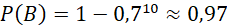 Xác suất của biến cố B: "Có ít nhất 1 trong 10 người được phỏng vấn có bằng đại học". là: