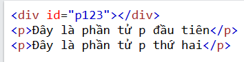 - "#p123+ p": Đây là một selector có kết hợp giữa ID selector và sibling combinator. Nó chọn các phần tử p là anh em liền kề (sibling) của phần tử có ID là "p123". Ví dụ, nếu có cấu trúc HTML như sau: