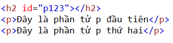 -"h2#p123 + p": Đây là một selector có kết hợp giữa element selector (h2), ID selector và sibling combinator. Nó chọn các phần tử p là anh em liền kề của phần tử h2 có ID là "p123". Ví dụ, nếu có cấu trúc HTML như sau: