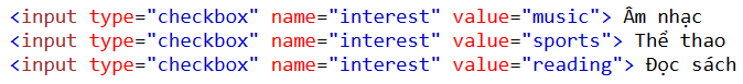 - Phần tử <input> với loại dữ liệu "checkbox":