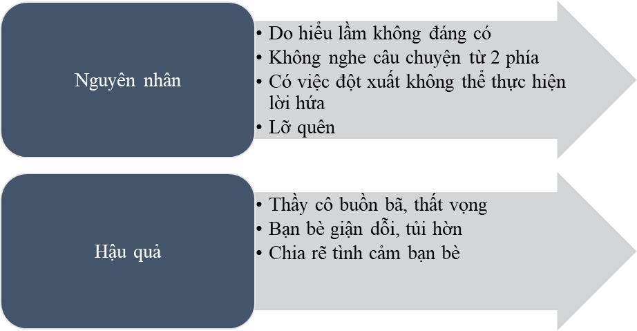 Lập bảng xác định những nguyên nhân và hậu quả của các vấn đề xảy ra trong quan hệ với thấy cô theo gợi ý...