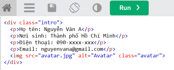 Để thêm ảnh đại diện vào bên phải của mục Giới thiệu chung, em có thể sử dụng thẻ <img> để nhúng hình ảnh. Dưới đây là ví dụ về cách thêm ảnh đại diện: