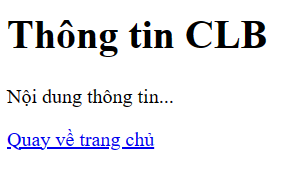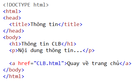 Viết đoạn mã để tạo liên kết quay về trang chủ CLB.html trong thong_tin.html