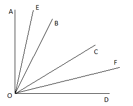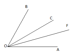 Vậy $\widehat{AOB}$ < $\widehat{AOC}$ nên tia OF nằm giữa hai tia OA và OC.