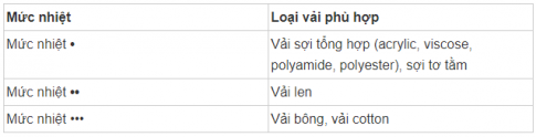 (2) Cách điều chỉnh núm nhiệt độ cho phù hợp với từng loại vải trong trang phục ở gia đình em:
