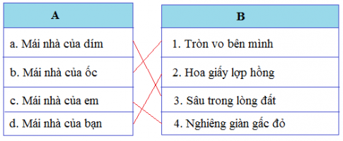 Chọn từ ngữ ở cột A thích hợp với mỗi từ ngữ ở cột B để tạo thành ý tả nét đáng yêu của mỗi mái nhà riêng