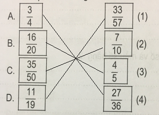 a. $\frac{y}{7} = \frac{56}{49}$ $\frac{y}{7} = \frac{56 : 7}{49 : 7}$ $\frac{y}{7} = \frac{8}{7}$ => $y = 8$ | b. $\frac{15}{27} = \frac{5}{y}$ $\frac{15 : 3}{27 : 3} = \frac{5}{y}$ $\frac{5}{9}= \frac{5}{y}$ => $y = 9$ |