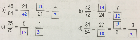 a. 35 : 5 và (35 x 4) : (5 x 4) 35 : 5 = 7 (35 x 4) : (5 x 4) = 140 : 20 = 7 => 35 : 5 = (35 x 4) : (5 x 4) | b. 105 : 15 và (105 : 5) : (15 : 5) 105 : 15 = 7 (105 : 5) : (15 : 5) = 21 : 3 = 7 => 105 : 15 = (105 : 5) : (15 : 5) |