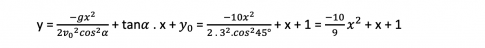 b) Với góc ném có số đo là 45°, vận tốc ban đầu của vật là 3 m/s và vật được ném xiên từ độ cao 1 m so với mặt đất, ta có phương trình chuyển động của vật này là: