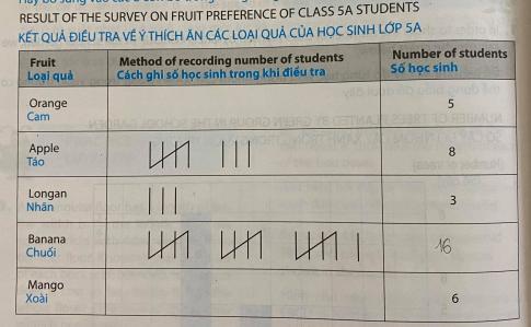 RESULT OF THE SURVEY ON FRUIT PREFERENCE OF CLASS 5A STUDENTS