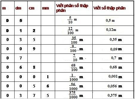 Viết phân số thập phân và số thập phân thích hợp vào chỗ chấm (theo mẫu):