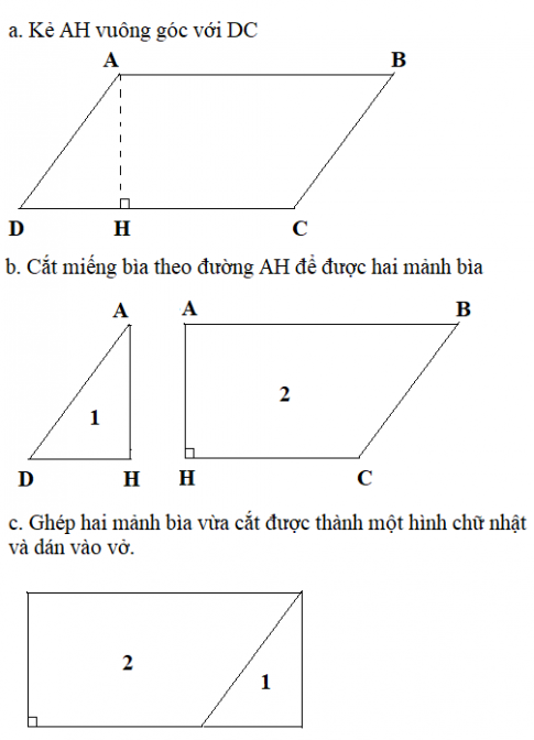 Lấy một miếng bìa có dạng hình bình hành như hình vẽ