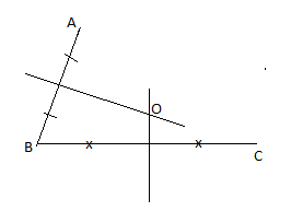 Cho hai đoạn thẳng AB = 2cm và BC = 3cm (góc ABC < $90^{\circ}$). Xác định giao điểm O của hai đường trung trực của đoạn thẳng AB và BC. | ![]() |