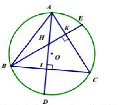 Cho tam giác ABC có ba góc đều nhọn nội tiếp trong đường tròn ( O ) , các đường cao AI , BK của tam giác ABC cắt nhau tại H ( I thuộc BC ,