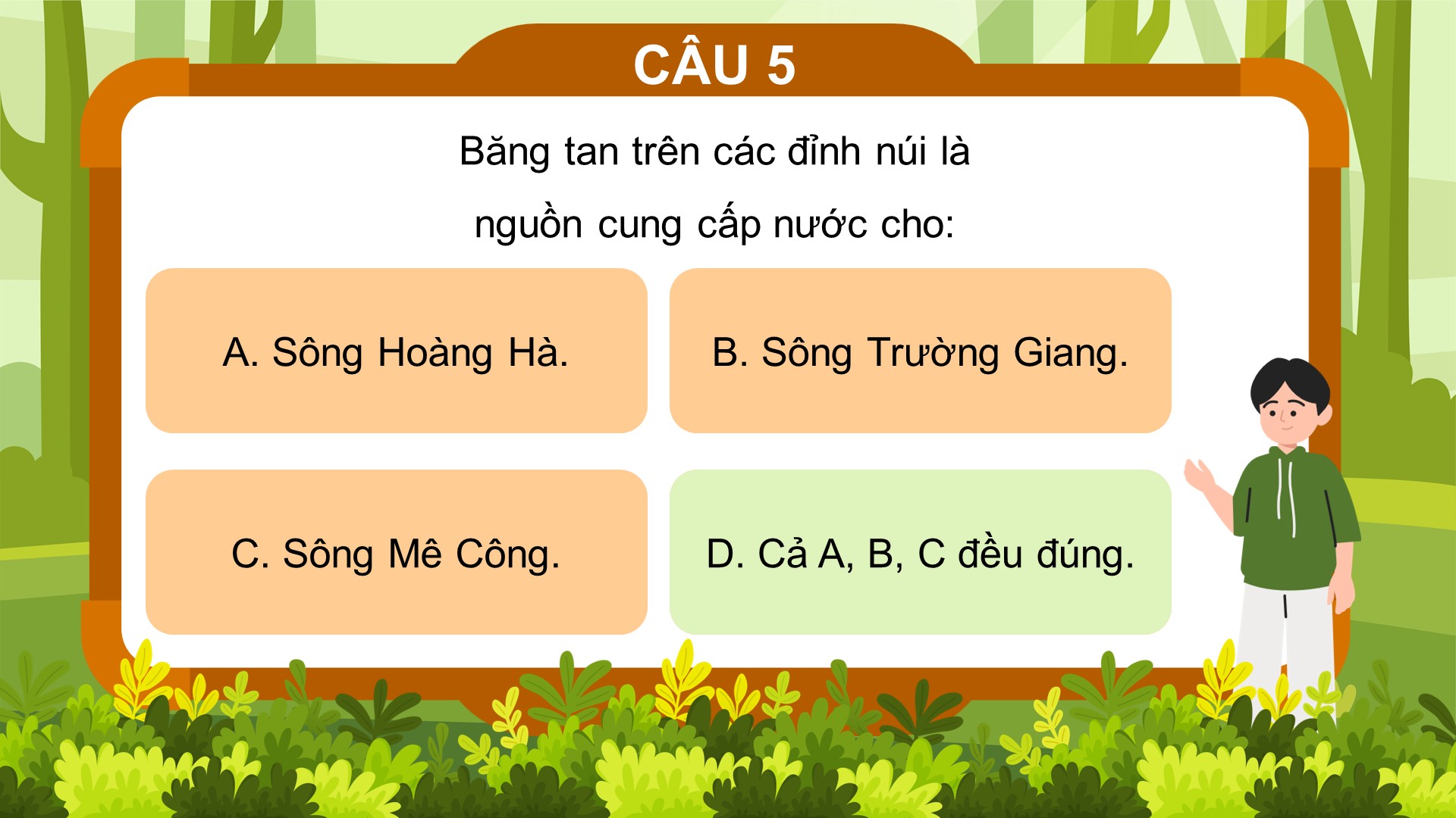 Game khởi động Địa lí 6 Cánh diều Bài 18: Sông. Nước ngầm và băng hà