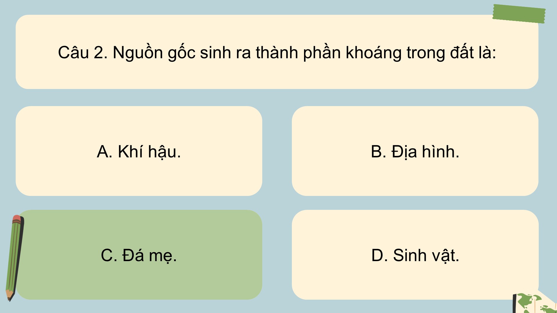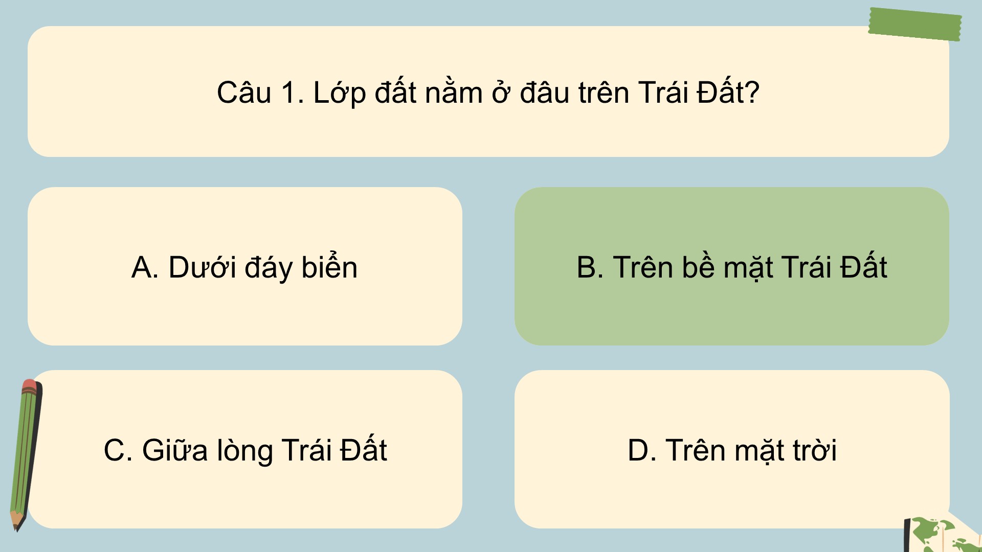 Game khởi động Địa lí 6 Cánh diều Bài 21: Lớp đất trên trái đất