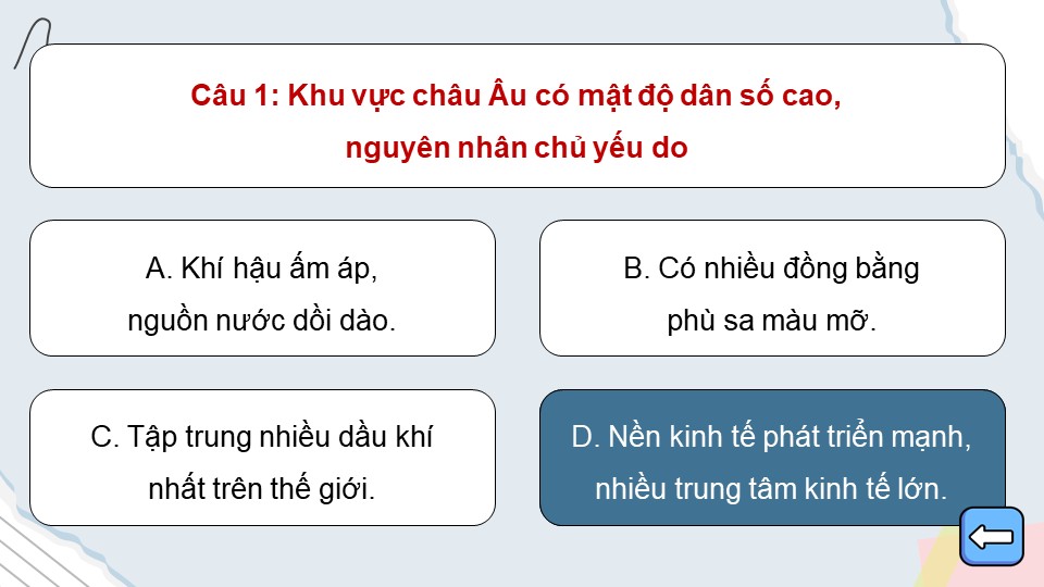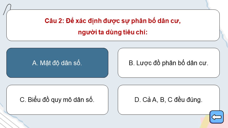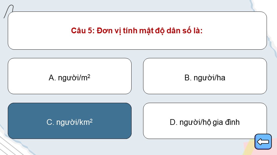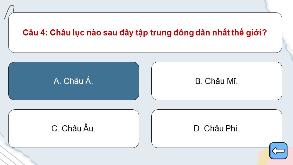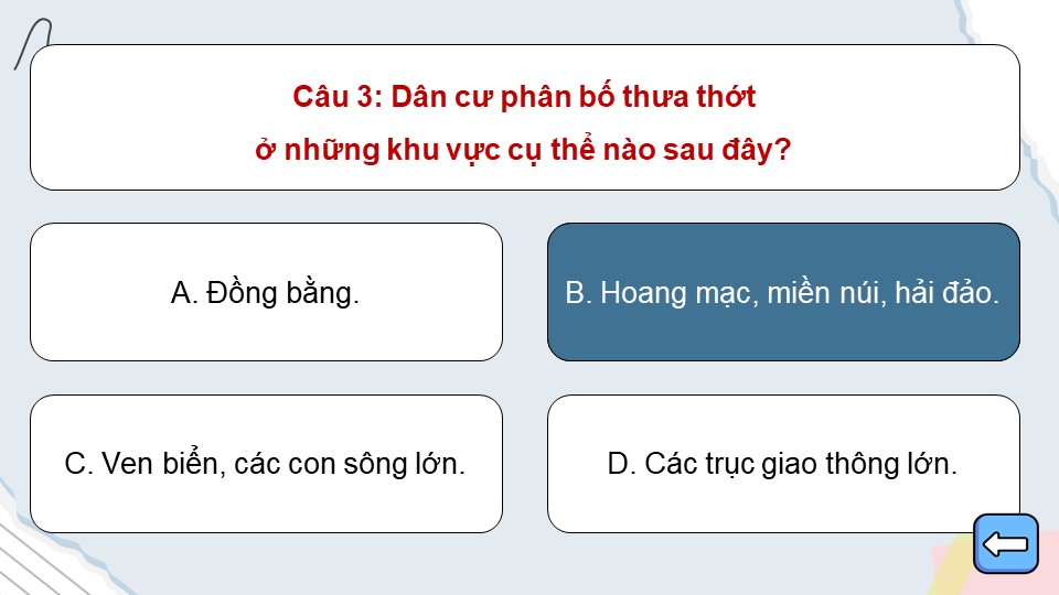 - Nội dung kiến thức: Trò chơi bao gồm các câu hỏi trắc nghiệm về kiến thức địa lí cơ bản như: