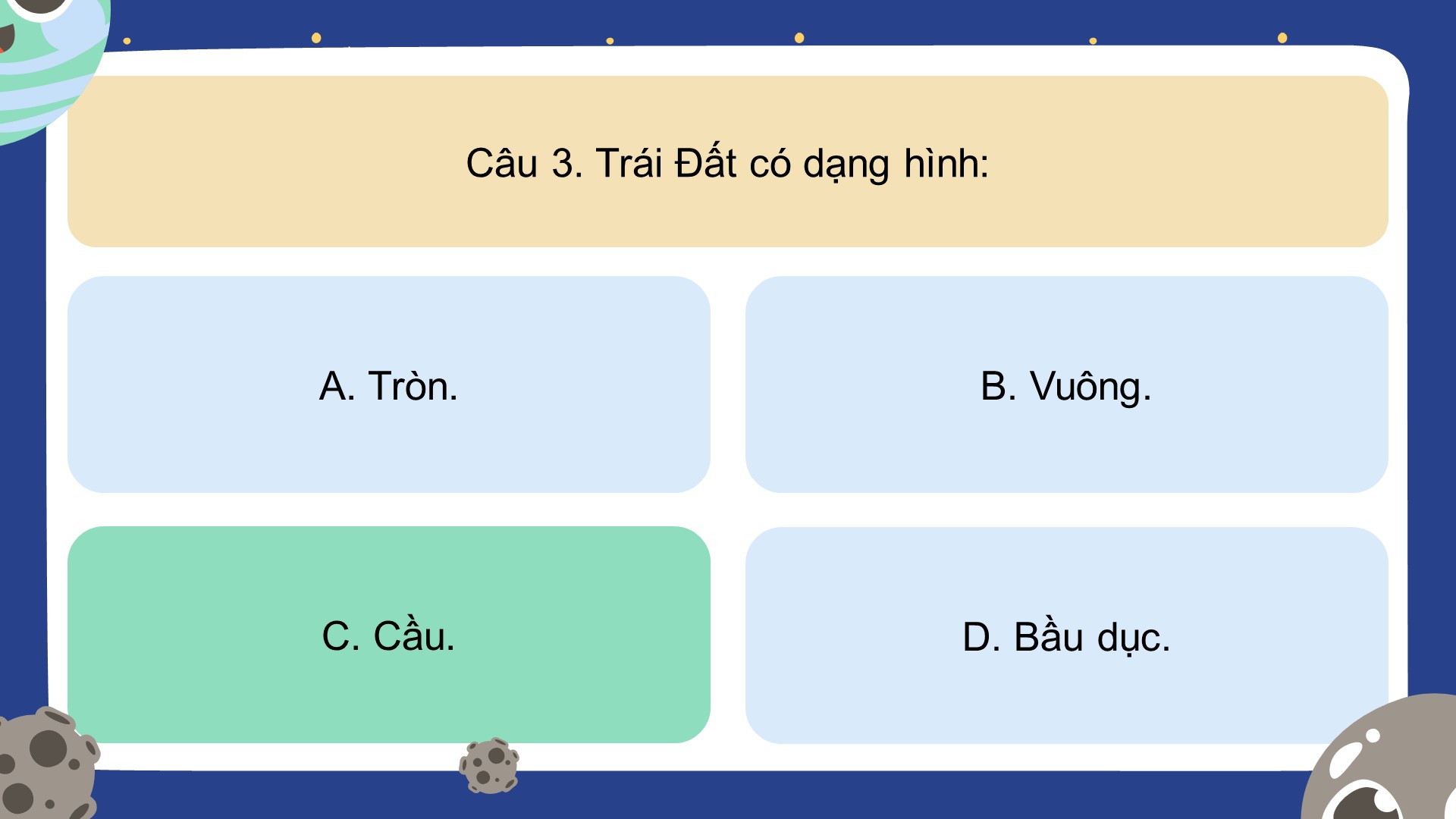 Game khởi động Địa lí 6 Cánh diều Bài 5: Trái đất trong hệ mặt trời. Hình dạng và kích thước của Trái đất