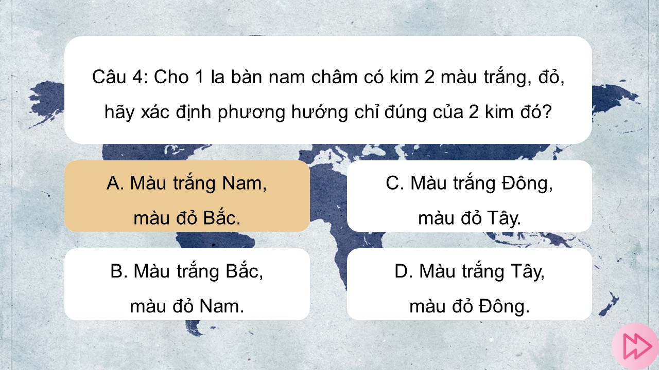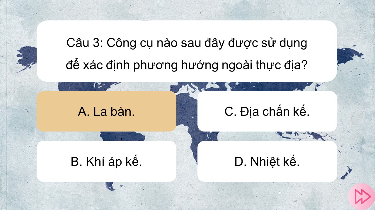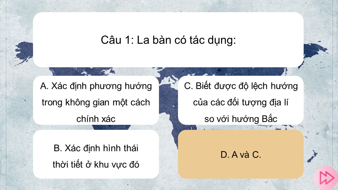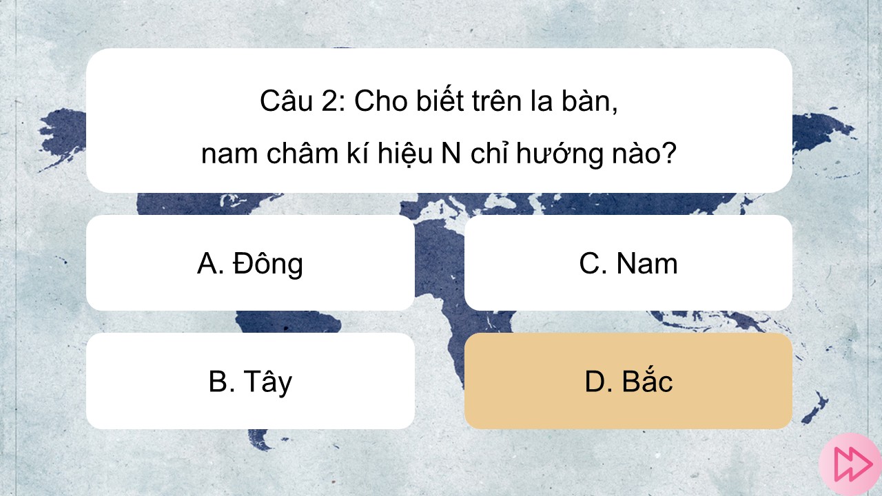 - Luật chơi: Học sinh trả lời các câu hỏi trắc nghiệm ẩn sau những chiếc la bàn.