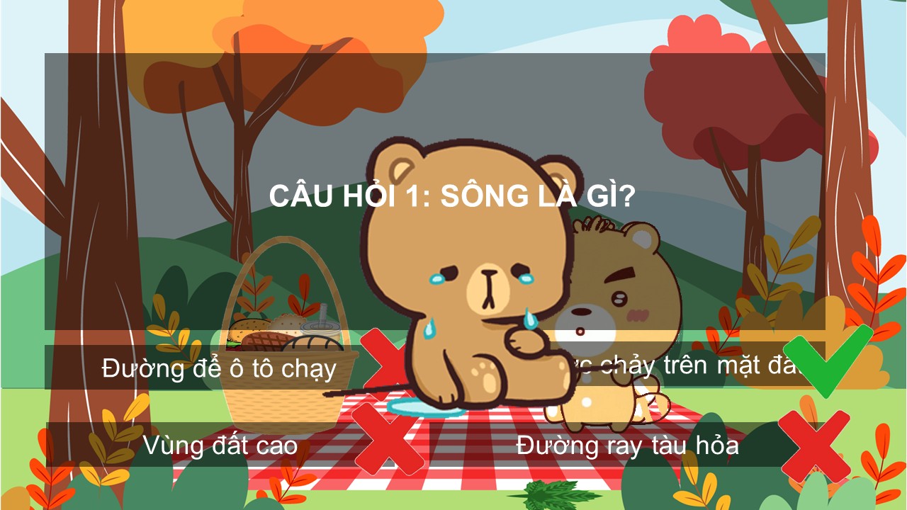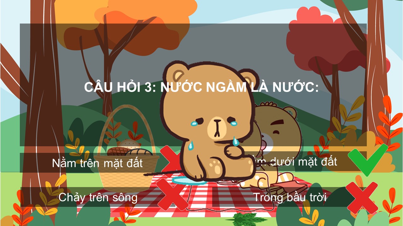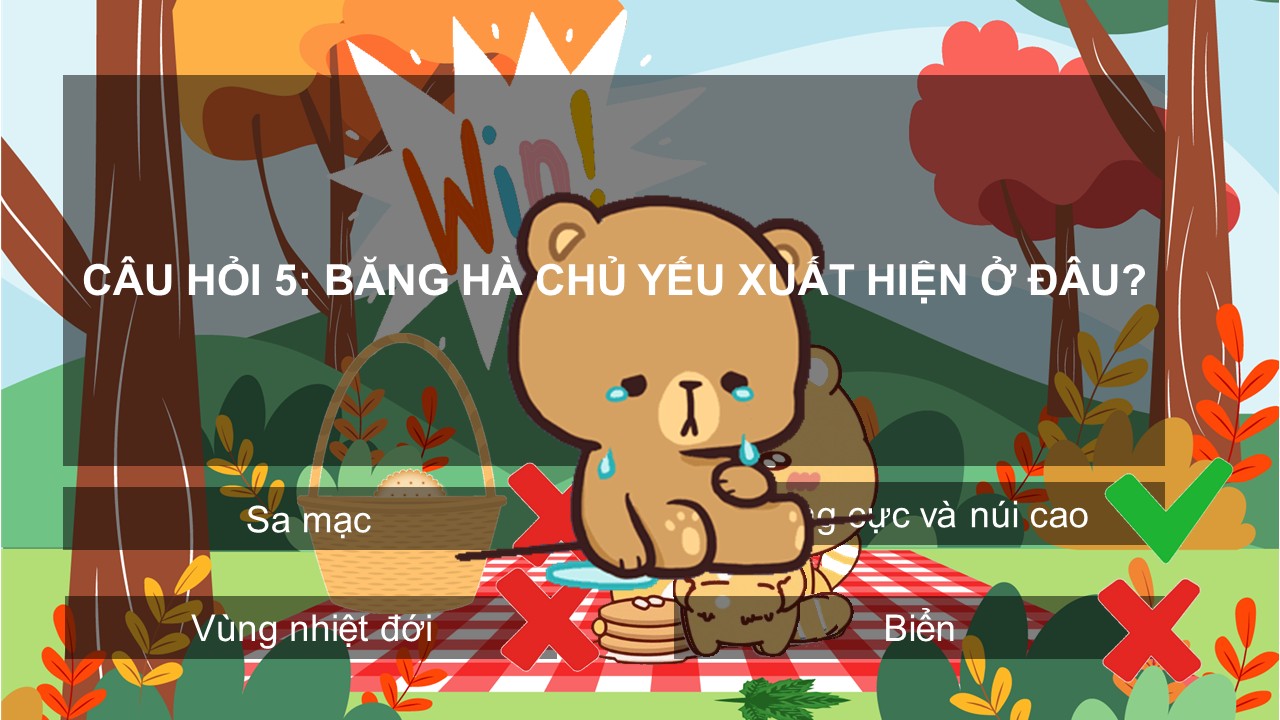 - Luật chơi: Học sinh sẽ trả lời các câu hỏi trắc nghiệm liên quan đến kiến thức của bài. Mỗi câu trả lời đúng sẽ giúp gấu con "ăn" được một món.