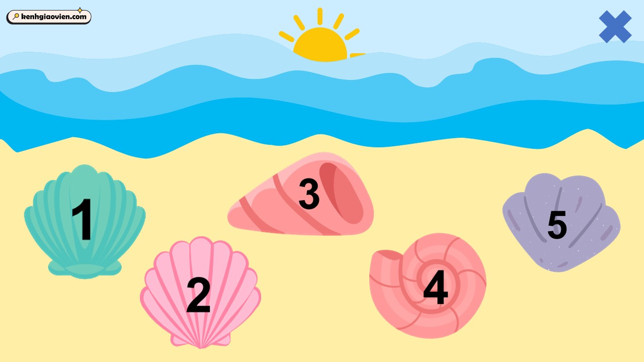 - Luật chơi: Học sinh lần lượt chọn các vỏ sò trên màn hình. Mỗi vỏ sò chứa một câu hỏi. Trả lời đúng sẽ được thu thập được 1 vỏ sò.